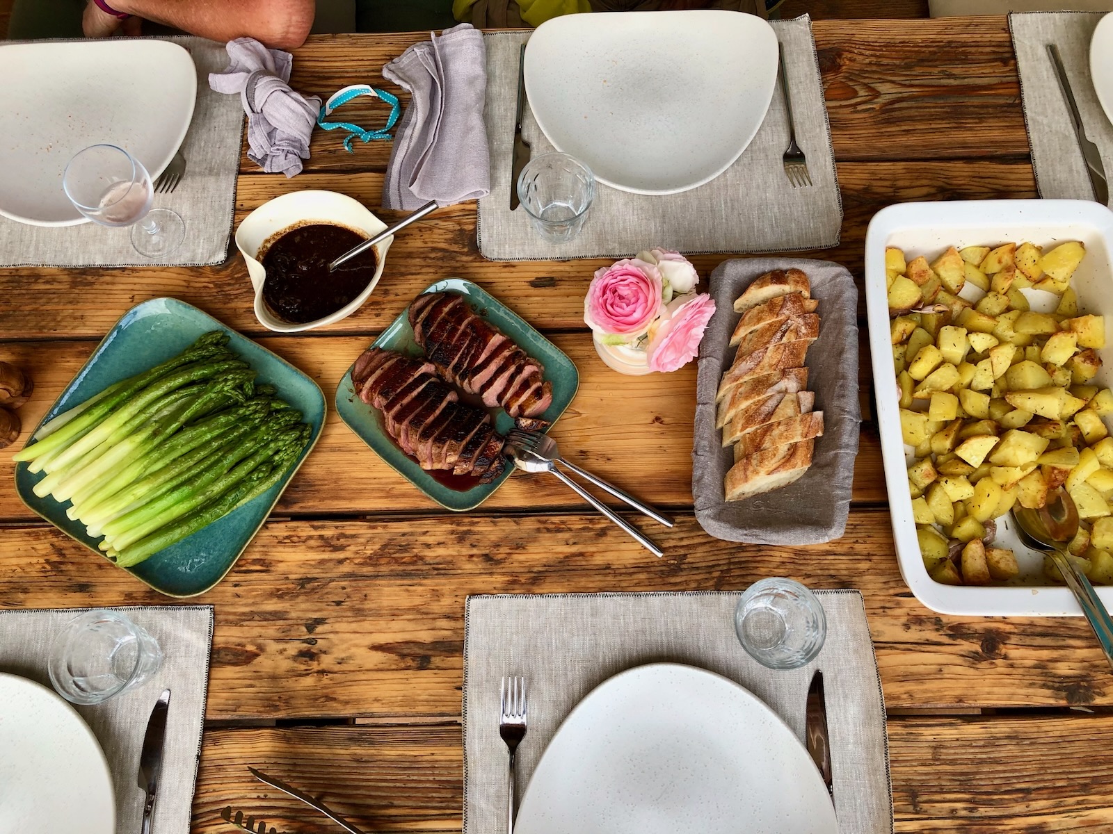 Les dîners sont servis suivant les saisons en terrasse ou à la salle à manger à notre table commune.